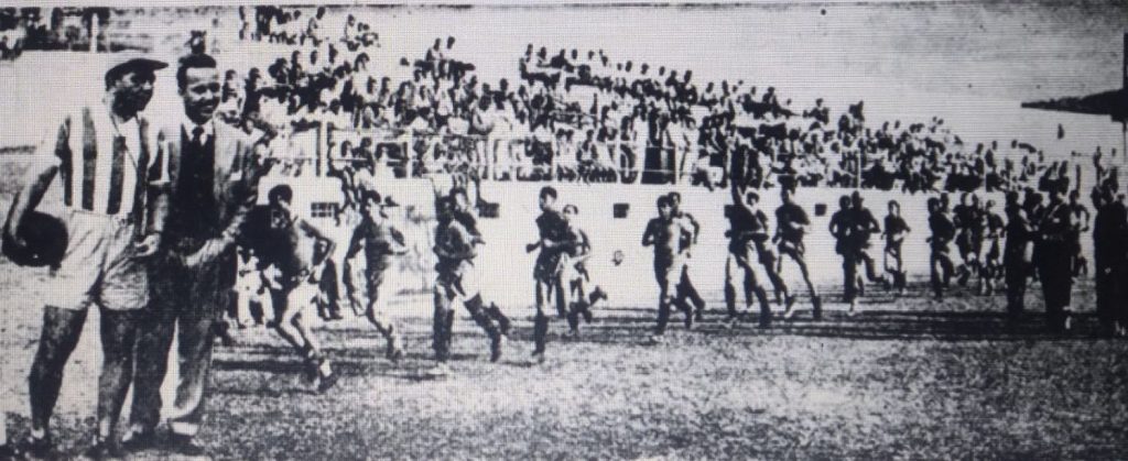 Os tempos eram mesmo outros. Não existiam redes sociais e os técnicos eram apresentados com a presença de público. Por isso, ao invés dos “likes”, o torcedor tinha que ir ao estádio. E, naquele dia, a torcida do Olaria compareceu em peso ao “alçapão”, em plena quinta-feira, para receber e prestigiar Gentil Cardoso. Bons tempos aqueles. E a imagem já diz tudo: se uma única presença já vale mais do que mil cliques, imagine a arquibancada cheia…