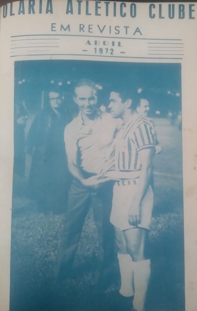 Antes do jogo, Zagallo ofertou a Garrincha uma faixa de campeão mundial.Garrincha já com a faixa entregue por Zagallo, momentos antes de seu jogo de estreia pelo Olaria.Zagallo, antes da partida, após colocar a faixa de tricampeão mundial em Garrincha.Garrinha com a faixa de tricampeão mundial ofertada por Zagallo no dia de sua estreia pelo Olaria. Foto: Jornal do Brasil.Jairzinho, o “furacão” da Copa de 1970, também foi homenagear Garrincha na sua estreia pelo Olaria. Foto: Jornal do Brasil.Um lance do jogo da estreia de Garrincha, vendo-se ainda o jogador rubro-negro Zé Mário e o árbitro Airton Vieira de Moraes atento ao lance.Garrincha X Paulo Henrique: o lateral do Flamengo tenta conter o gênio olariense, sob os olhares do árbitro Airton Vieira de Moraes.Garrincha e o zagueiro rubro-negro Reyes. Foto: Jornal do Brasil.Gessê, autor do gol contra o Flamengo, corre para comemorar com Garrincha. Foto: Jornal dos Sports.Jogadores do Olaria comemoram, junto com Garrincha, o gol de Gessê no jogo de estreia contra o Flamengo. O jogo terminou empatado em 1 a 1.A última camisa 7 de Garrincha foi a do Olaria.O jornal O Globo, em sua edição de 24 de fevereiro de 1972, deu destaque à estreia de Garrincha pelo Olaria em sua primeira página.Um lance de Garrincha no jogo contra o América, realizado no estádio de São Januário. Foto: Jornal do Brasil.Garrincha em ação no jogo contra o América, em São Januário, no dia 4 de março de 1972.Garrincha, contra o América, em 21 de maio de 1972, em São Januário.O único jogo de Garrincha pelo Olaria na Bariri foi contra o Bangu, em 16 de abril de 1972.Garrincha com Roberto Pinto, seu companheiro de equipe no Olaria.Garrincha no gramado da Rua Bariri. Muitas vezes ele treinava descalço. foto: Jornal do Brasil.Garrincha foi destaque na capa da Revista do Olaria em abril de 1972.Garrincha, com a camisa do Olaria, foi o grande destaque da capa da revista Placar que anunciava o Campeonato Carioca de 1972.A camisa listrada do Olaria, que já era usava desde 1970, ficou marcada na história do clube por ser o manto envergado por Garrincha na Bariri.O time do Olaria com Garrincha, no estádio Romeirão, em Juazeiro do Norte, Ceará, antes do amistoso no qual Garrincha marcou seu último gol. O jogo foi no dia 21 de abril de 1972 e Garrincha recebeu o título de “cidadão juazeirense”.Onde quer que fosse pelo Brasil afora com a camisa do Olaria, Garrincha era assediado pelas crianças.