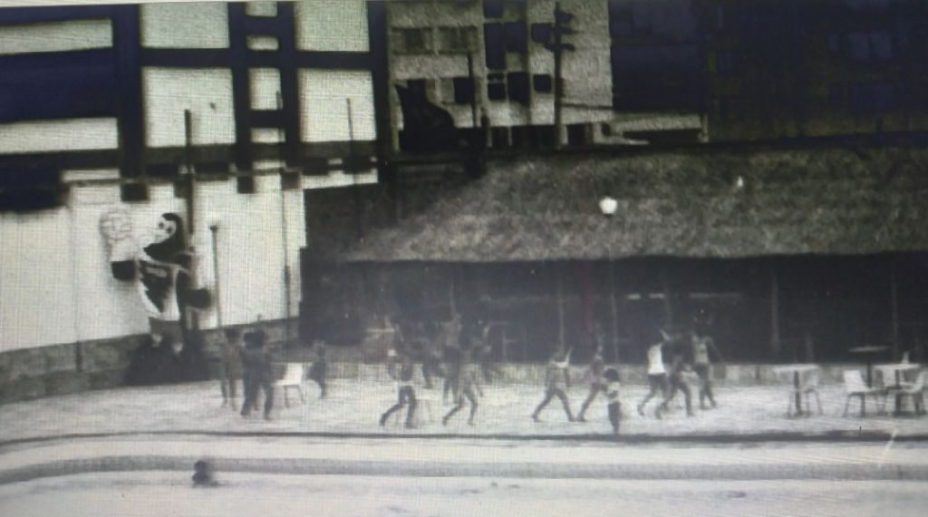 Um detalhe interessante é que a única publicidade existente no parque aquático em 1971 era a do Ponto Frio. Na próxima foto, aproximando a imagem, podemos ver à esquerda o pinguim do Ponto Frio, dentro do qual aparece a palavra “Bonzão”. A solitária publicidade se justificava na época. O Ponto Frio havia sido o grande parceiro do Olaria no Campeonato Carioca daquele ano, ao comprar 800 mil cruzeiros da renda do jogo Olaria X Flamengo, o que garantiu, pelo regulamento, o Olaria no Campeonato Brasileiro. No entanto, a antiga CBD, em um golpe que jamais será reparado, excluiu o Olaria da competição nacional.