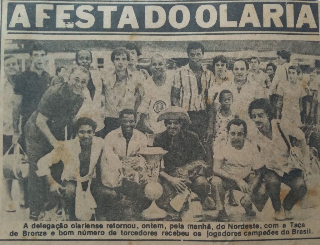 Flagrante do primeiro jogo da final, contra o Santo Amaro, no antigo campo do Botafogo em Marechal Hermes, em 25 de abril de 1981, quando o Olaria goleou por 4 a 0.A manchete do Jornal dos Sports após a goleada do Olaria no primeiro jogo da final.No Estádio do Arruda, o governador de Pernambuco, Marco Maciel, entrega a taça de Campeão Brasileiro da Taça de Bronze ao capitão Mauro. À esquerda, o presidente Edmundo dos Santos Cigarro.O capitão Mauro, no estádio do Arruda, ergue a Taça de Bronze, vendo-se ainda o presidente Edmundo dos Santos Cigarro.No gramado do Arruda, jogadores e o preparador físico e auxiliar técnico Toninho Barroso com a Taça de Bronze e as medalhas de campeão.A chegada da delegação olariense no aeroporto do Galeão e a festa dos torcedores. Foto: Jornal dos Sports.O jornal Diário de Pernambuco deu destaque à grande conquista olariense.No aeroporto do Galeão, o técnico Duque e o presidente Edmundo Cigarro com a taça, além de beneméritos e torcedores. Foto: Jornal dos Sports.No aeroporto do Galeão, o então torcedor número1 Alcides Miranda, o Cidinho, com os jogadores Aurê e Paulo Ramos.Na Rua Bariri, atletas e comissão técnica coma Taça de Bronze, vendo-se ainda o patrono Álvaro da Costa Mello. Ao fundo, a Igreja da Penha. Foto: Revista Placar.Na Rua Bariri, o técnico Duque ergue a Taça de Bronze. foto: Revista Placar.Na Rua Bariri, a festa da entrega das faixas de campeão da Taça de Bronze. Da esquerda para a direita: Waldyr Vital (vice-presidente de futebo|), Itagoré (ex-goleiro dos anos 1950), Antônio Ribeiro, Álvaro Augusto (benemérito), Alcemar Calvo (vice-presidente administrativo) e Estrada.A faixa de campeão e o modelo de camisa usado pelo time no jogo final, em Recife.