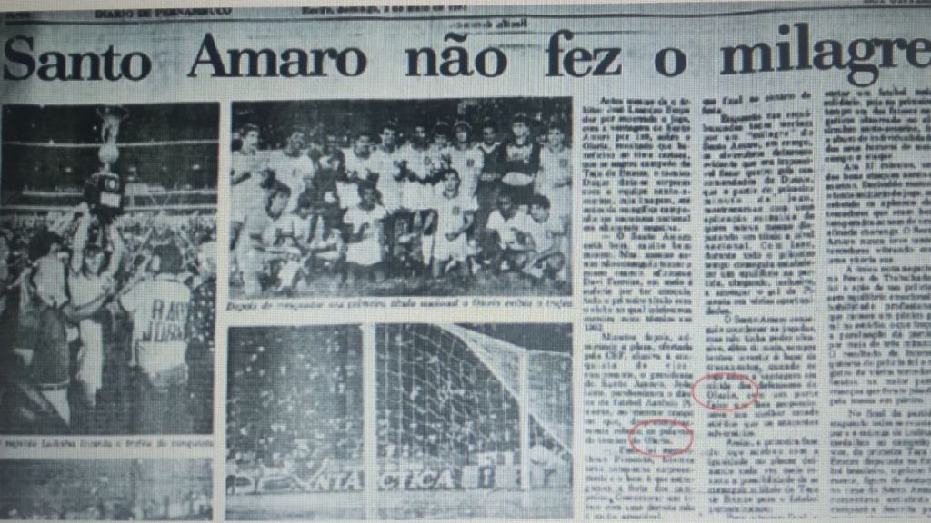 Olaria 4 X 0 Santo Amaro(primeiro jogo da final) – Gols de Chiquinho, Zeíca e Leandro (2) para o Olaria.