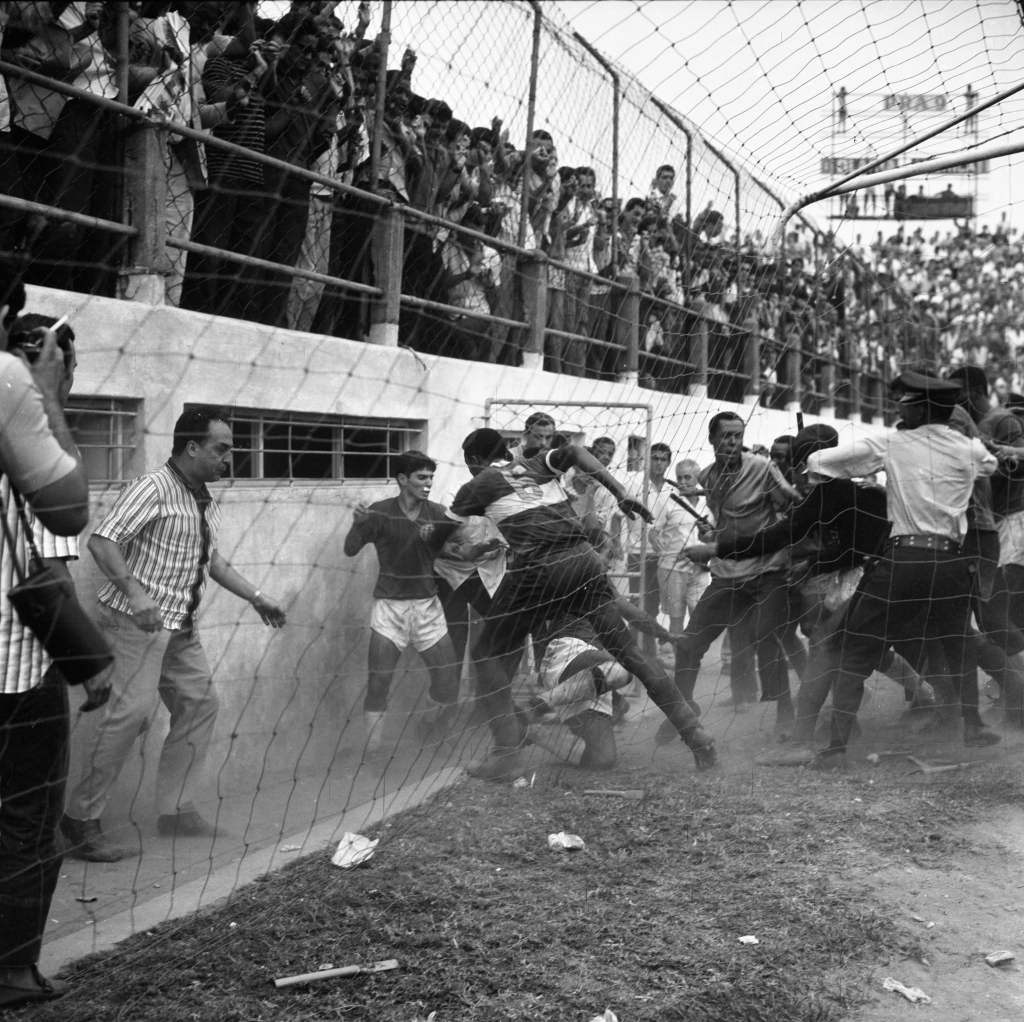 Em 1955, na Bariri, Olavo persegue o árbitro Antônio Musitano, que corre desesperadamente.