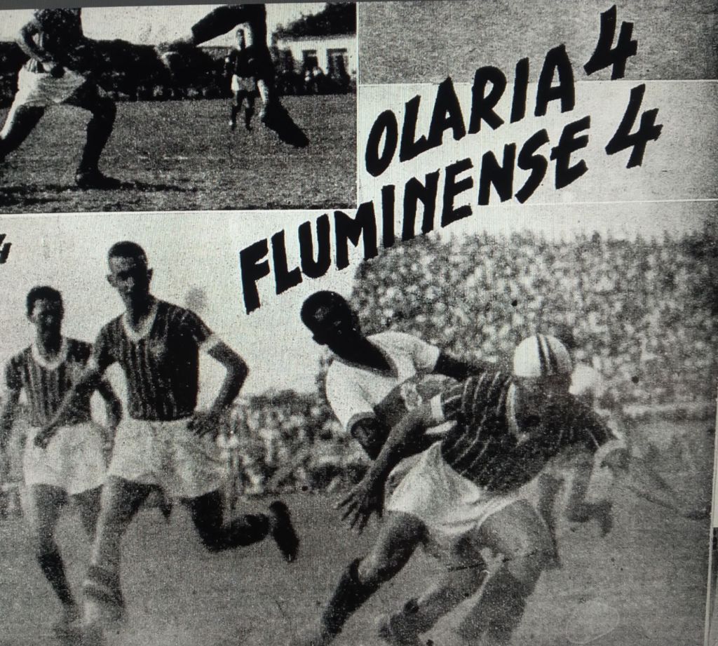 O primeiro dos chamados grandes a cair no Alçapão da Bariri foi o Botafogo, no dia 1/11/1947: Olaria 3 X 2 Botafogo. Na imagem, Baiano marca o primeiro gol olariense.