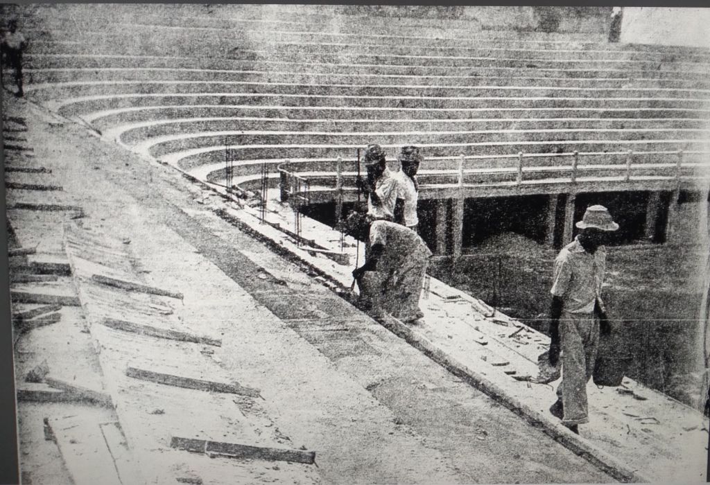 A construção do Alçapão da Bariri, vendo-se a curva da arquibancada.